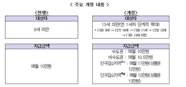 이러한 불상사를 막기 위해 정부는 이번 개정안에 **"2017년생 아동에 대해서는 13세가 되기 전까지 중간에 끊김 없이 지속적으로 수당을 지급한다"**는 강력한 특례 조항을 명시했습니다.